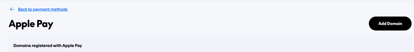 You'll see a page showing domains currently registered with Apple Pay. Click the "Add Domain" button to register a new domain.