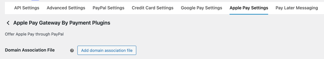 Once your domain is registered with Apple Pay through PayPal, you can configure the Apple Pay payment method settings in your plugin. Navigate to WooCommerce > Settings > Payments > Apple Pay Gateway By Payment Plugins to customize:
