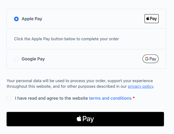 Apple Pay & Google Pay: New "Checkout" Payment Section